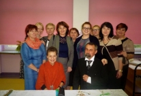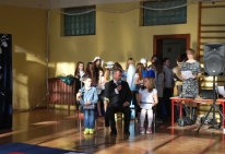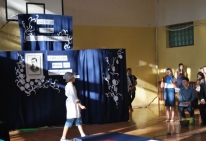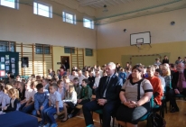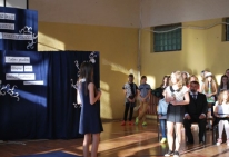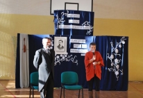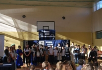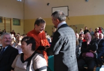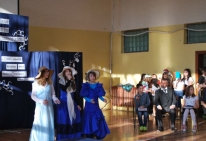 Następnie odbył się konkurs ze znajomości życia i twórczości H. Sienkiewicza w dużej mierze oparty na treściach zawartych we wcześniejszym przedstawieniu. W konkursie wzięły udział zespoły uczniów – przedstawicieli szkół sienkiewiczowskich: w Radomsku, Orzechowie i Żytnie. Konkurs wygrali nasi goście z Radomska, wykazując się największą wiedzą i refleksem, czego im serdecznie gratulujemy! Przyjemnie było podjąć rywalizację z takimi przeciwnikami! Po rozstrzygnięciu konkursu poprosiliśmy panią Annę Dziewanowską, aby ubarwiła nasze spotkanie ciekawostkami o swoim pradziadku – Henryku, a także pozostałych Sienkiewiczach. Pani Dziewanowska dała się poznać wszystkim jako osoba niezwykle serdeczna i sympatyczna. Zaskoczyła nas nie tylko frapującymi opowieściami z życia Sienkiewicza ianegdotami na jego temat, ale także swoim interesującym życiorysem. Spostrzegliśmy, iż swoją przynależność do rodu Sienkiewiczowskiego pani Anna traktuje jako misję,przedstawiając w całym kraju, a także poza jego granicami, sylwetkę swego wielkiego pradziadka.