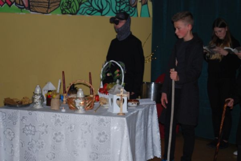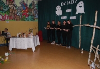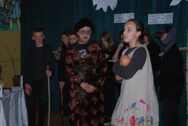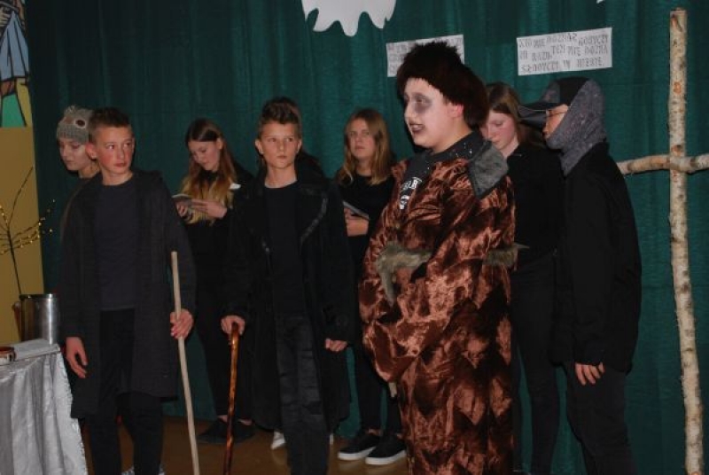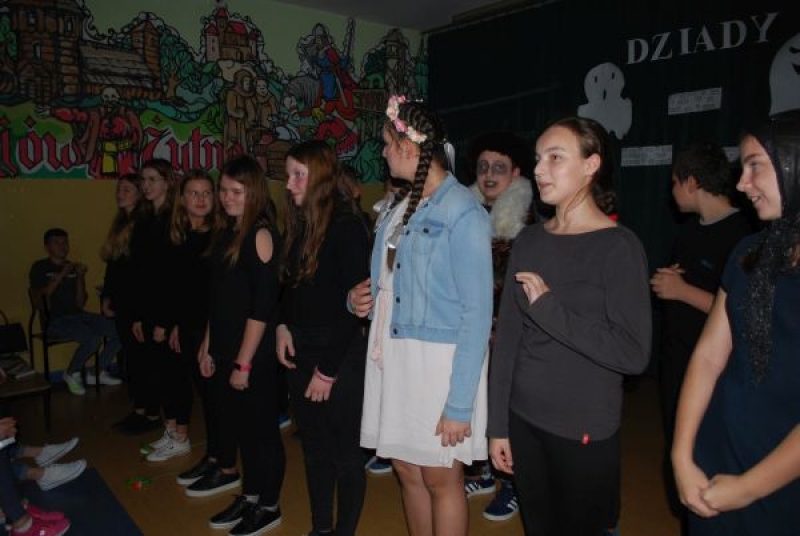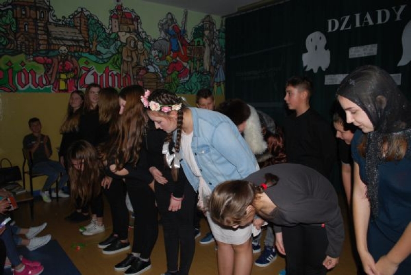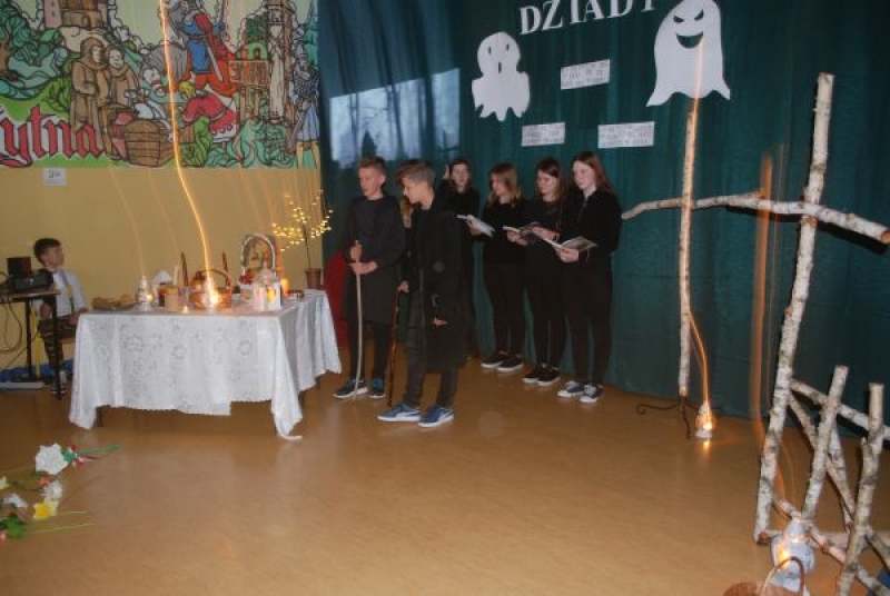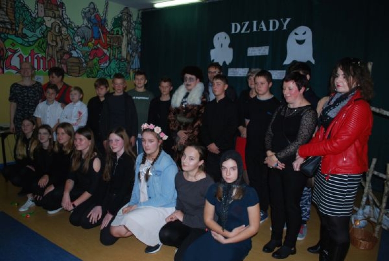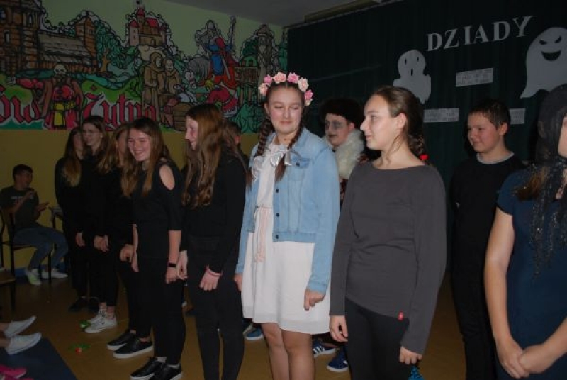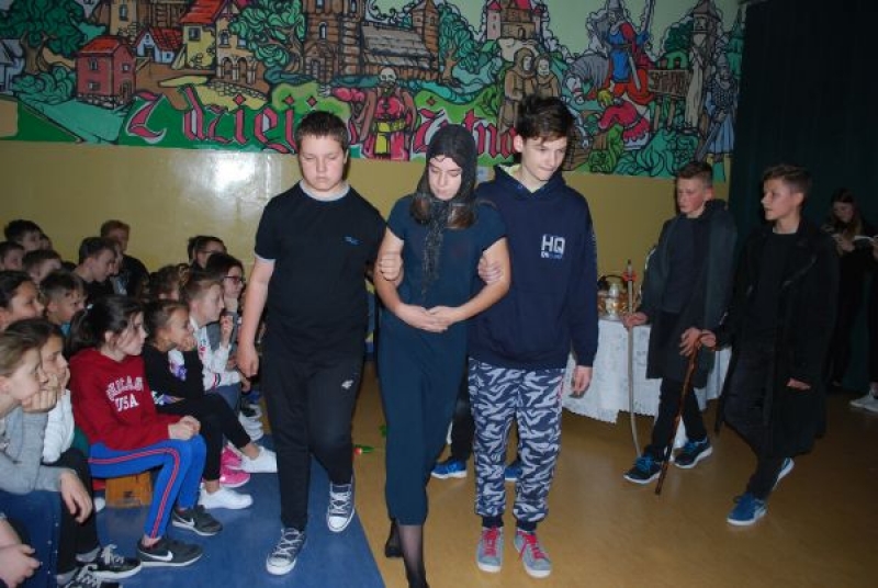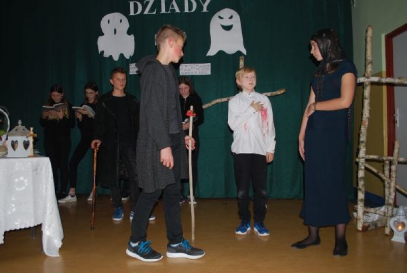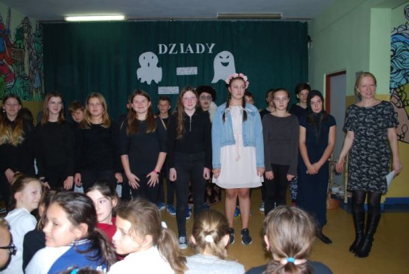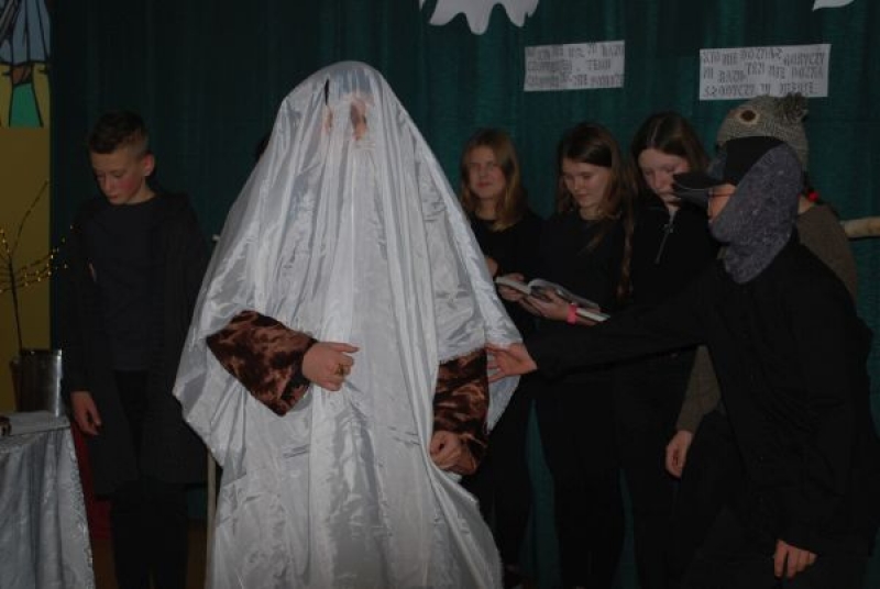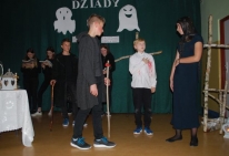 28 listopada uczniowie klasy siódmej pod kierunkiem wychowawczyni, Sylwii Kudrzyn, wystawili inscenizację II części ,,Dziadów” Adama Mickiewicza. Zdumiewającą grą aktorską i nastrojową scenografią stworzyli niepowtarzalny, tajemniczy, czasami przyprawiający o dreszcze, klimat, w który wprowadzili tak licznie przybyłych na przedstawienie widzów. Emocji było co niemiara!!!