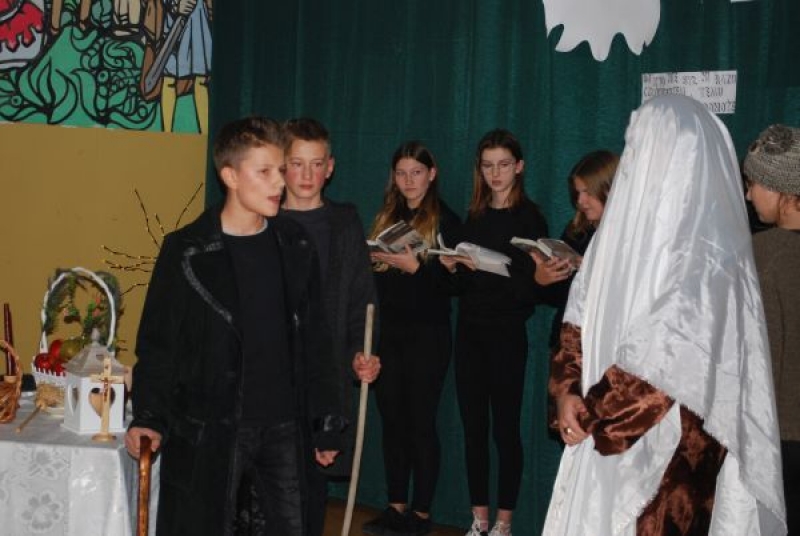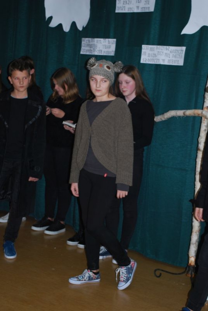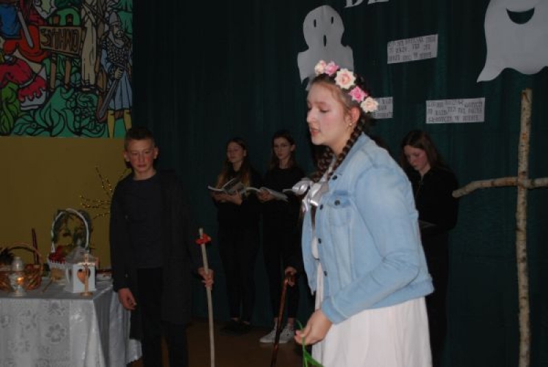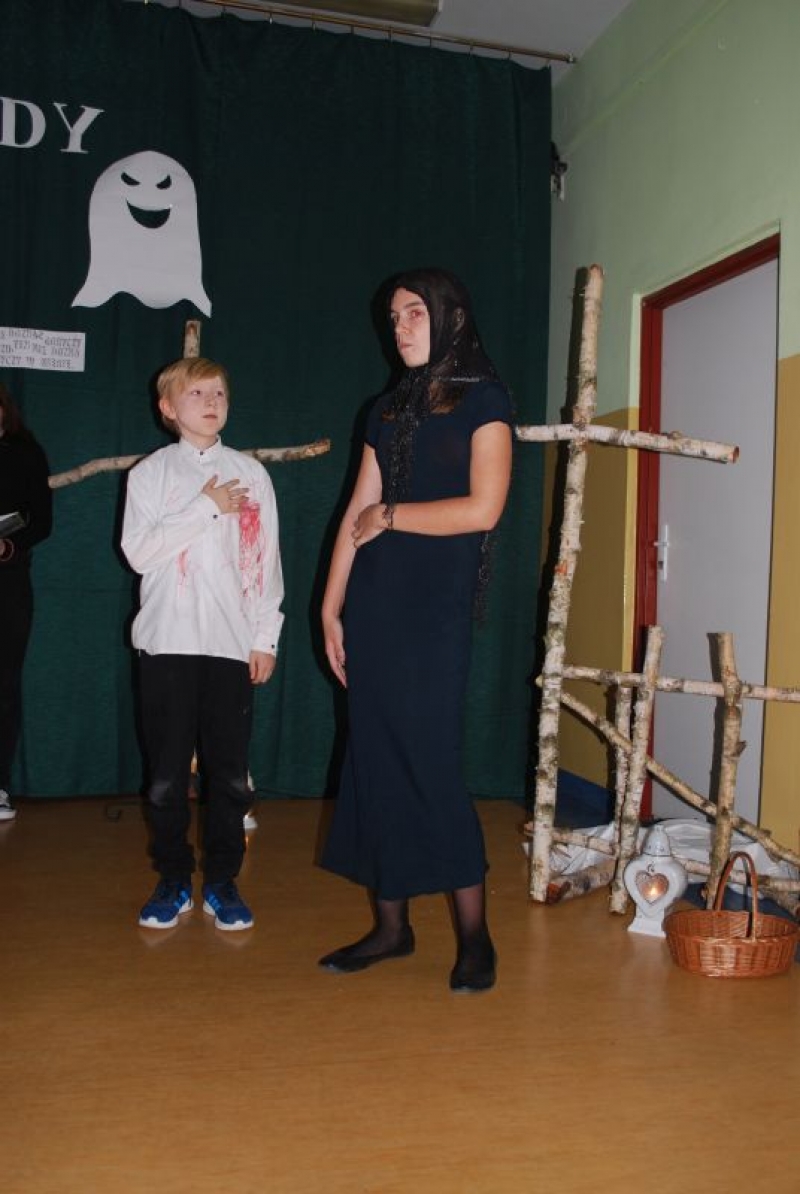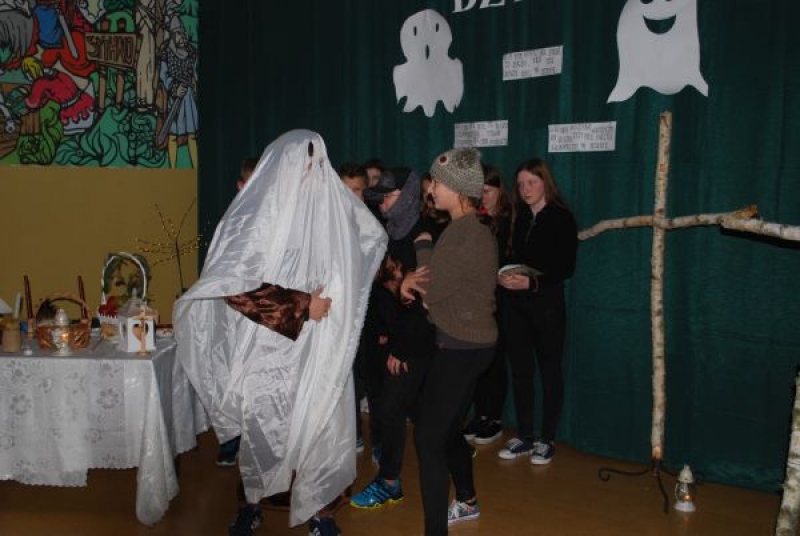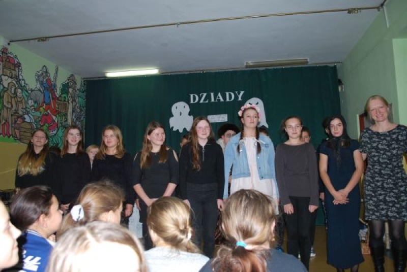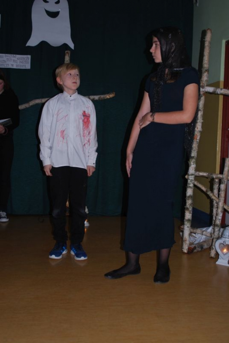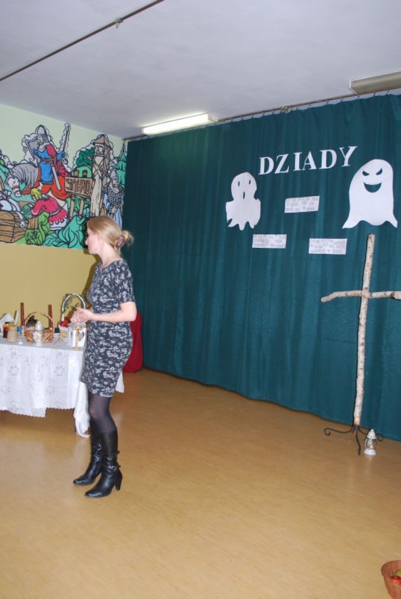 28 listopada uczniowie klasy siódmej pod kierunkiem wychowawczyni, Sylwii Kudrzyn, wystawili inscenizację II części ,,Dziadów” Adama Mickiewicza. Zdumiewającą grą aktorską i nastrojową scenografią stworzyli niepowtarzalny, tajemniczy, czasami przyprawiający o dreszcze, klimat, w który wprowadzili tak licznie przybyłych na przedstawienie widzów. Emocji było co niemiara!!!