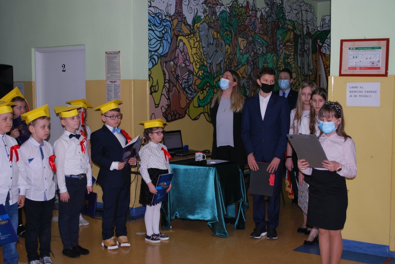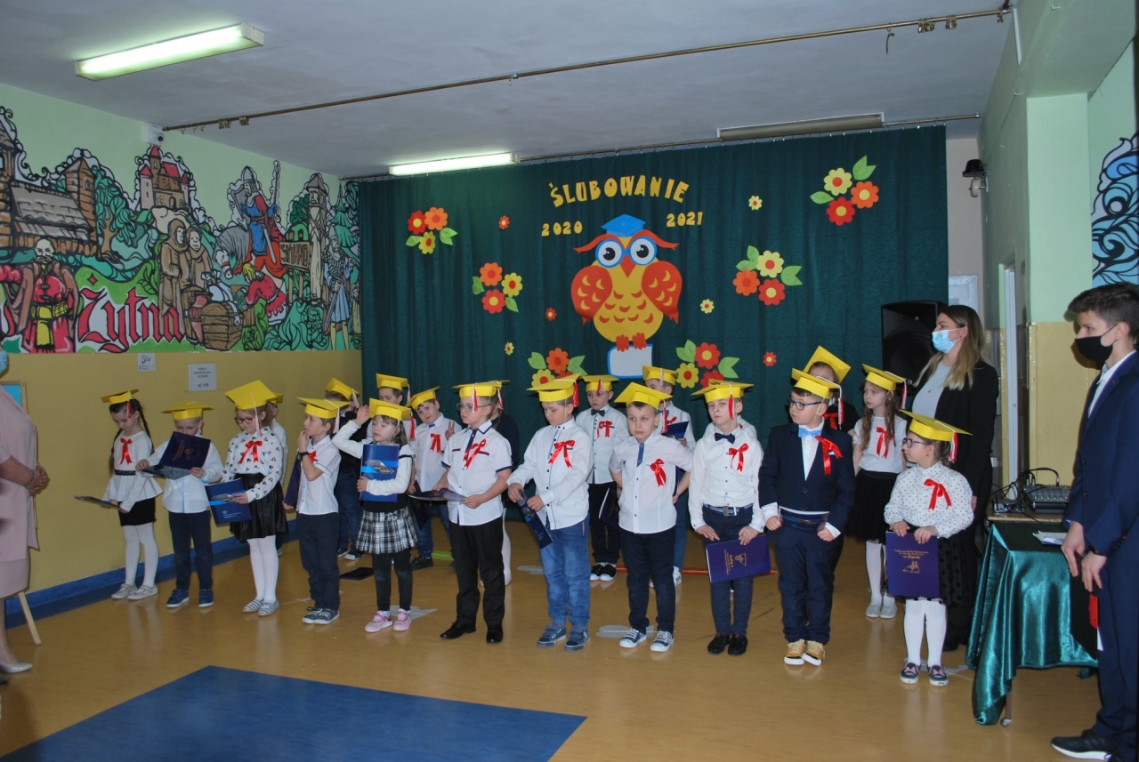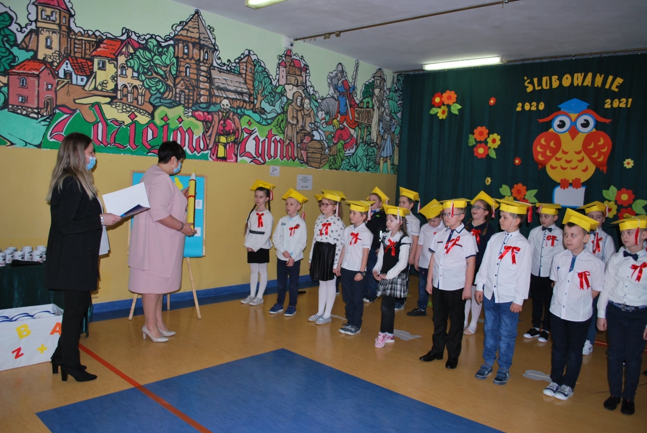 W dniu 5 marca 2021 roku w naszej szkole odbyło się uroczyste ślubowanie uczniów klasy pierwszej. Najmłodsi uczniowie naszej szkoły zaprezentowali ciekawy program artystyczny i zostali przyjęci w poczet braci uczniowskiej, a na pamiątkę tego wydarzenia otrzymali wspaniałe upominki oraz dyplomy.