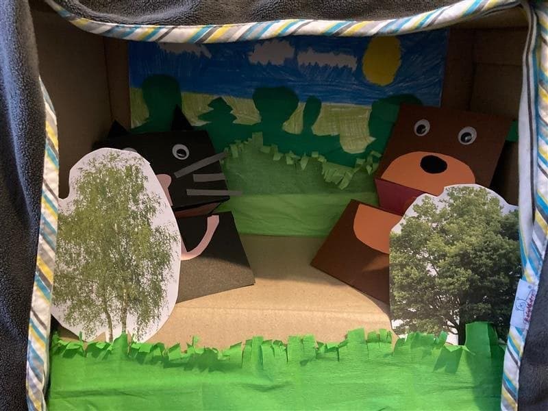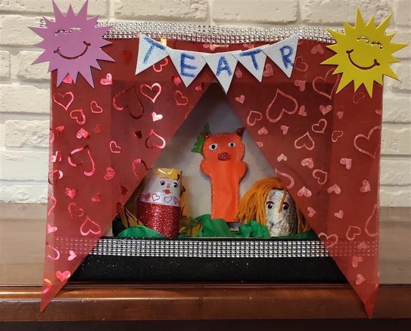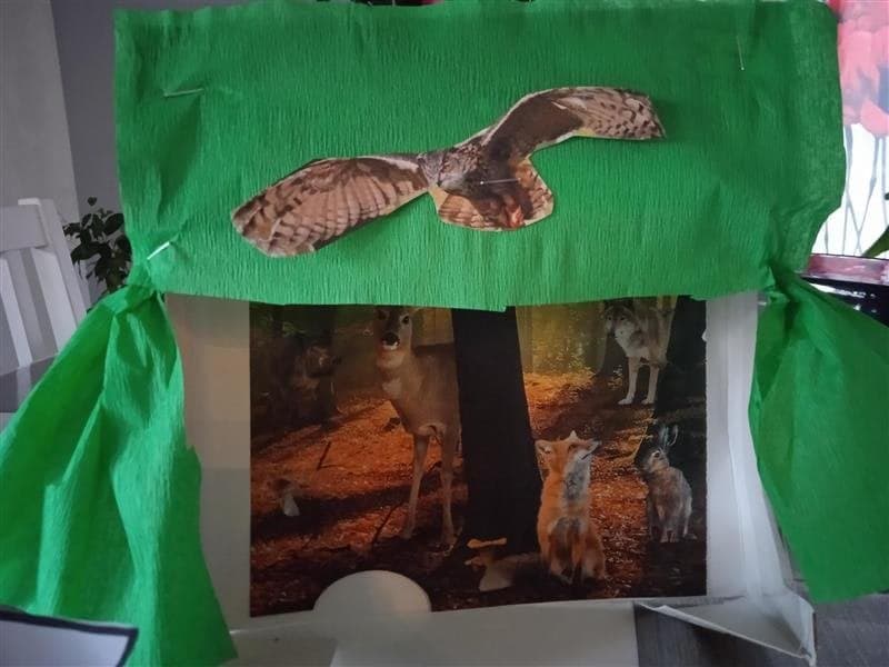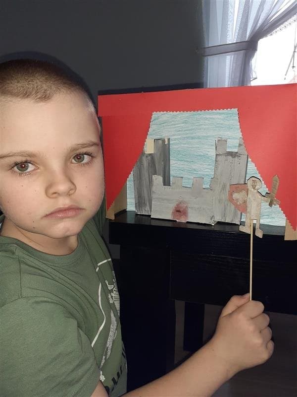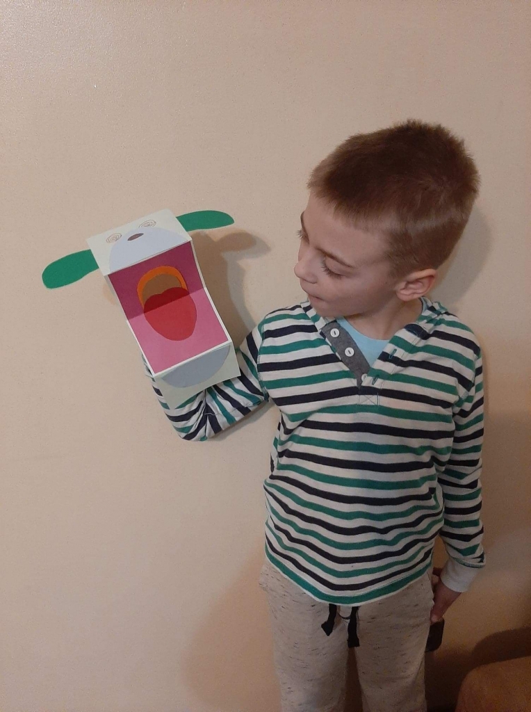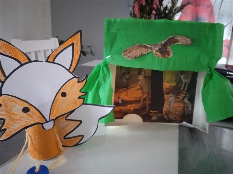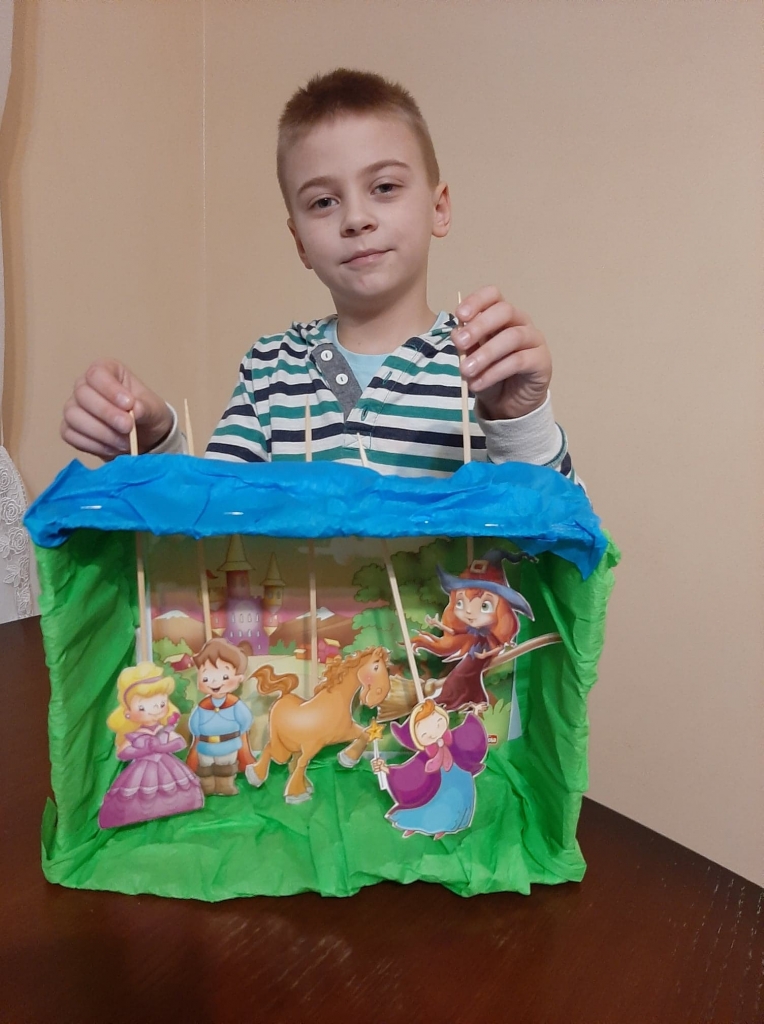 Uczniowie klasy pierwszej zgłębiają wiedzę na temat pracy w teatrze lalek. A oto pudełkowe teatrzyki i pacynki w wykonaniu najmłodszych uczniów.