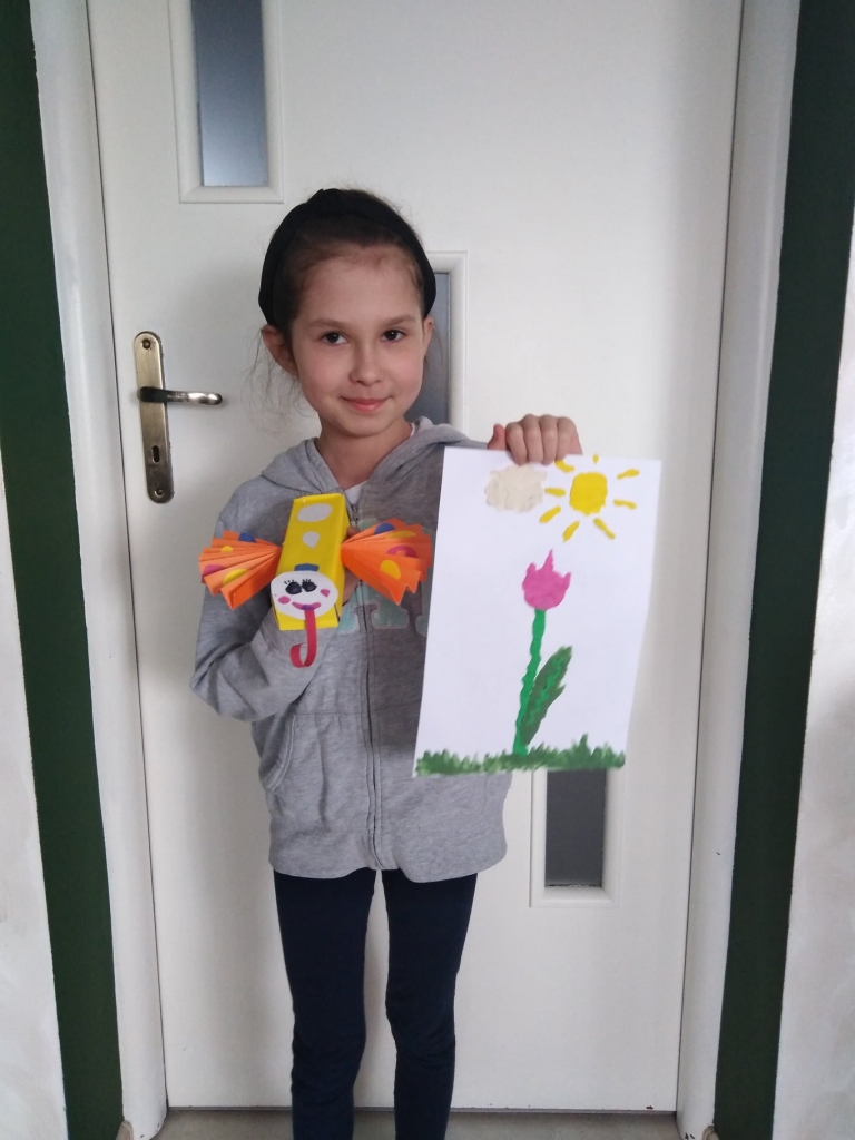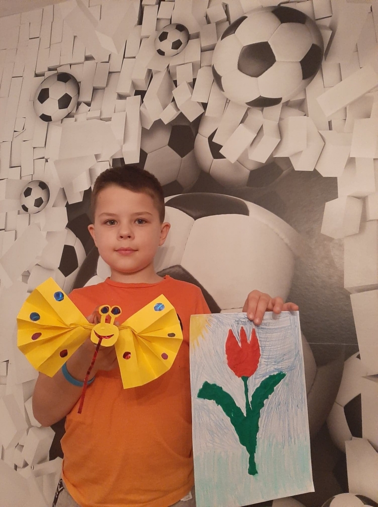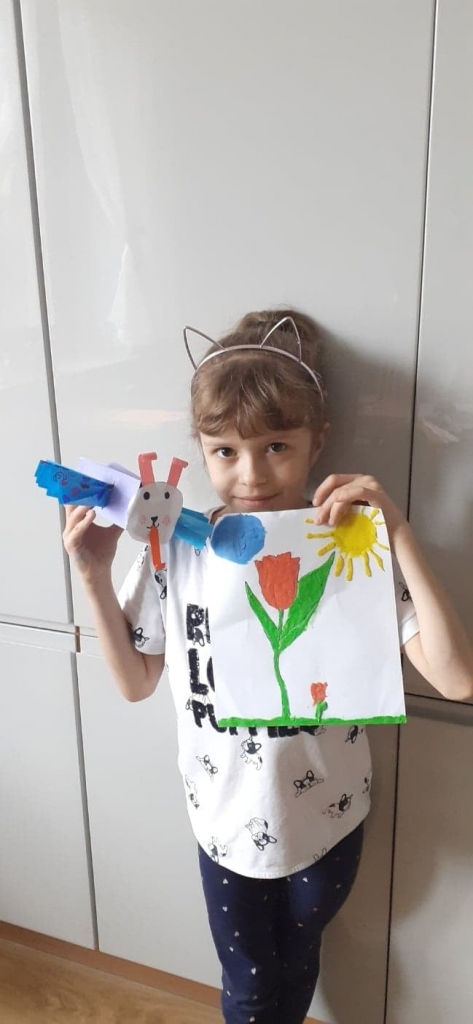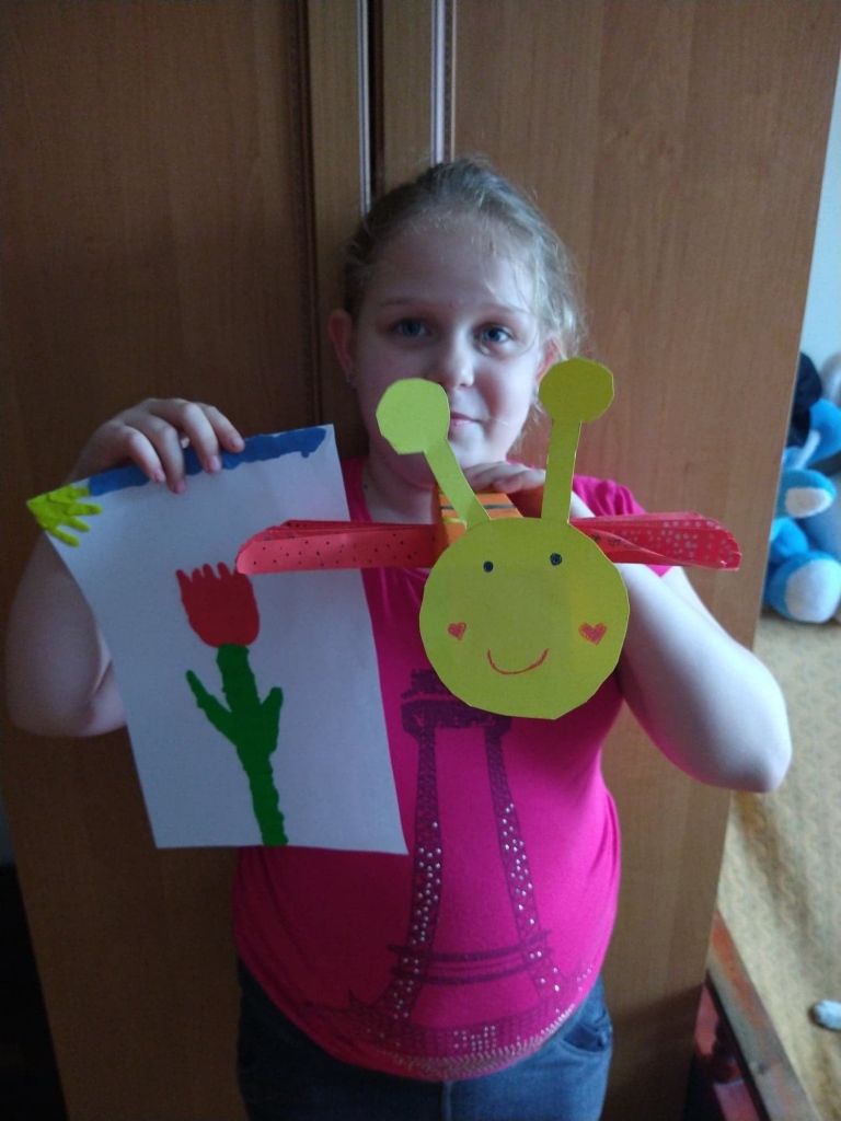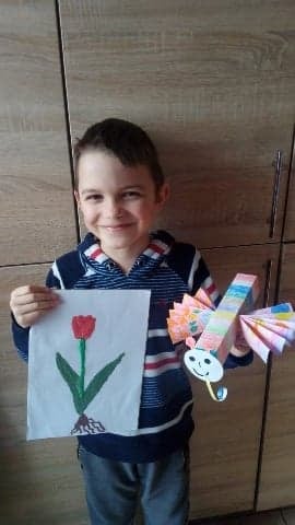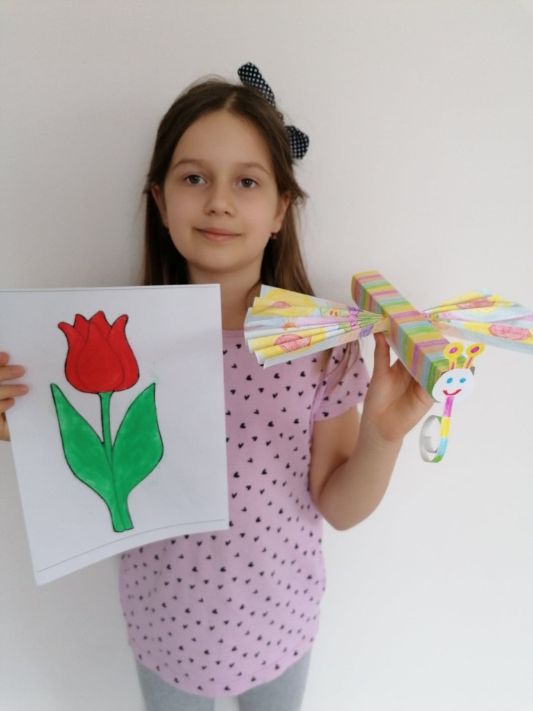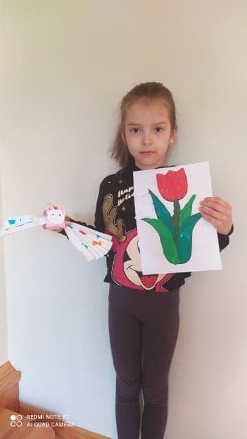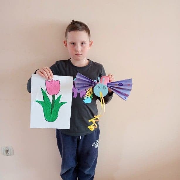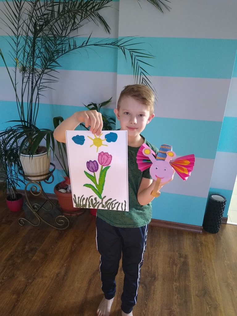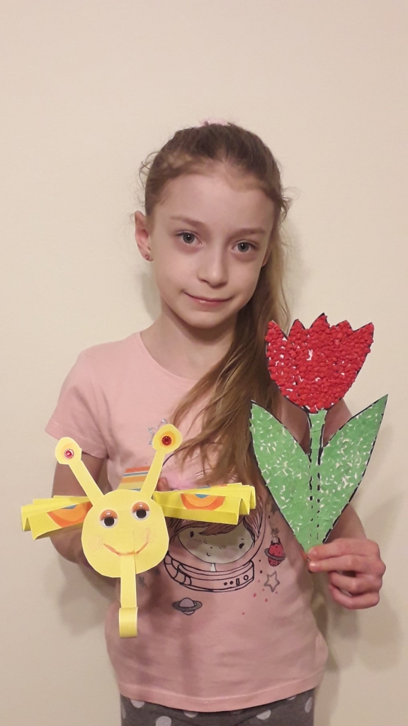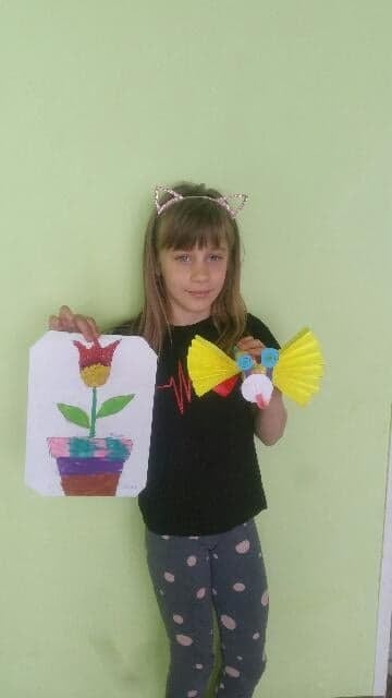 Uczniowie klasy 2 podczas zajęć wyklejali tulipana oraz wykonali piękne motyle
