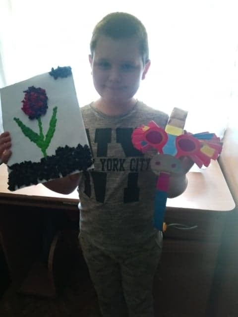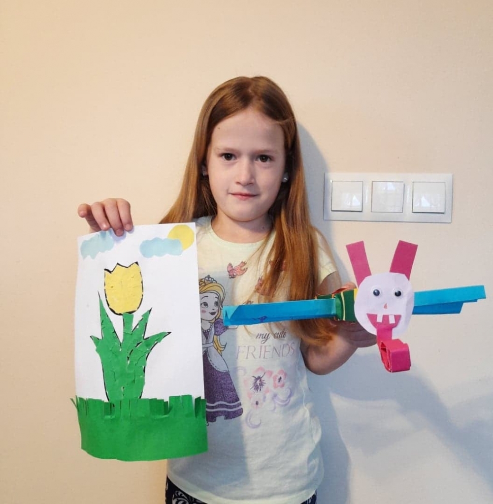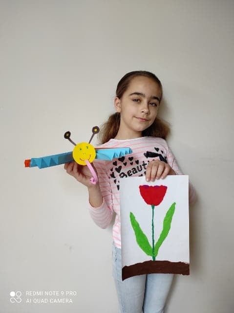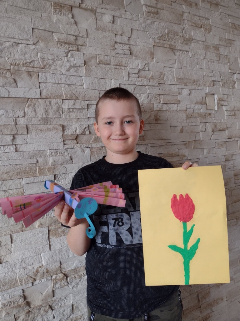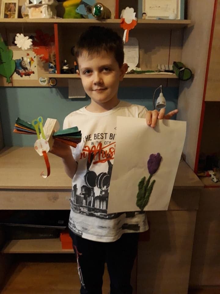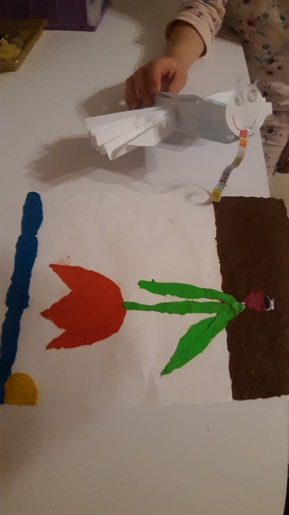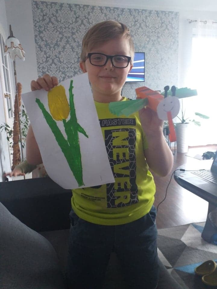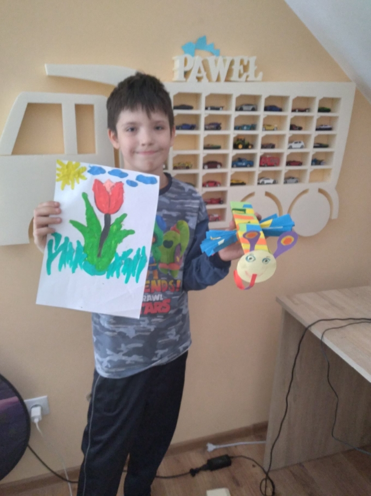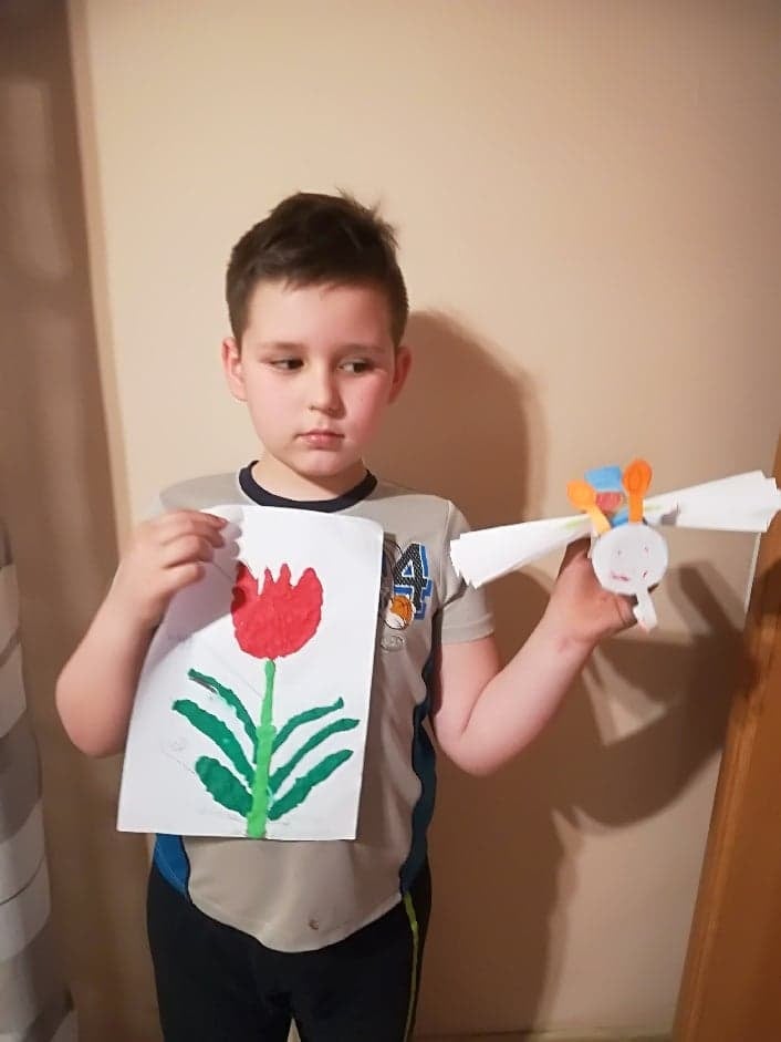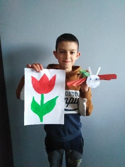 Uczniowie klasy 2 podczas zajęć wyklejali tulipana oraz wykonali piękne motyle