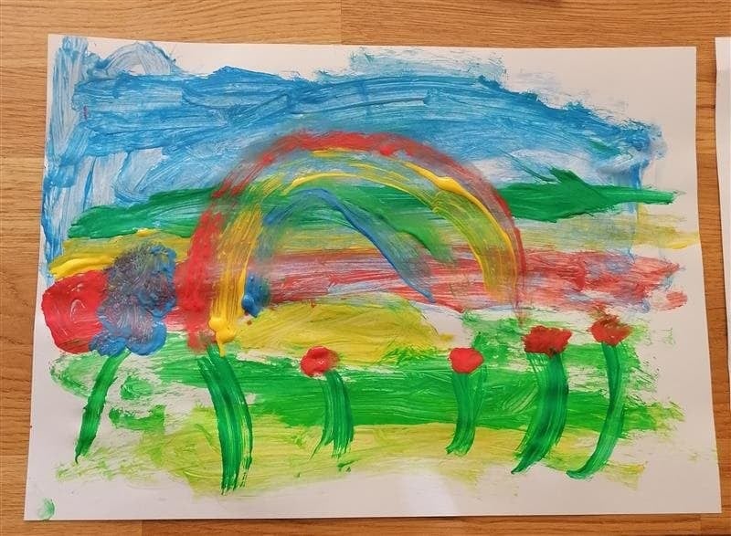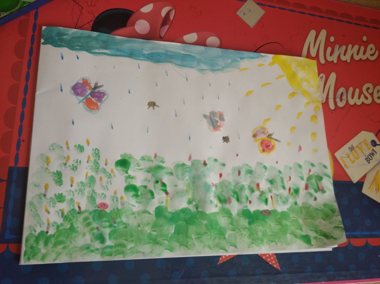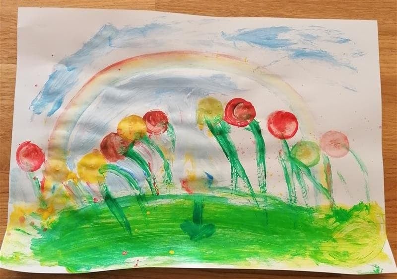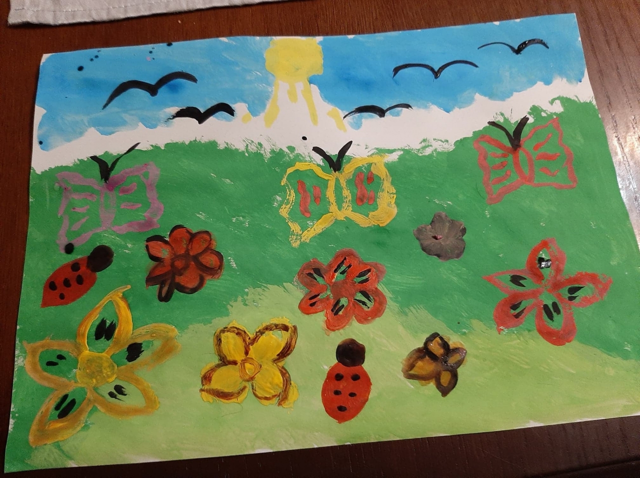 Łąka wiosną pełna jest zieleni, owady i rośliny budzą się do życia. Oto wiosna w oczach i na pracach pierwszoklasistów.