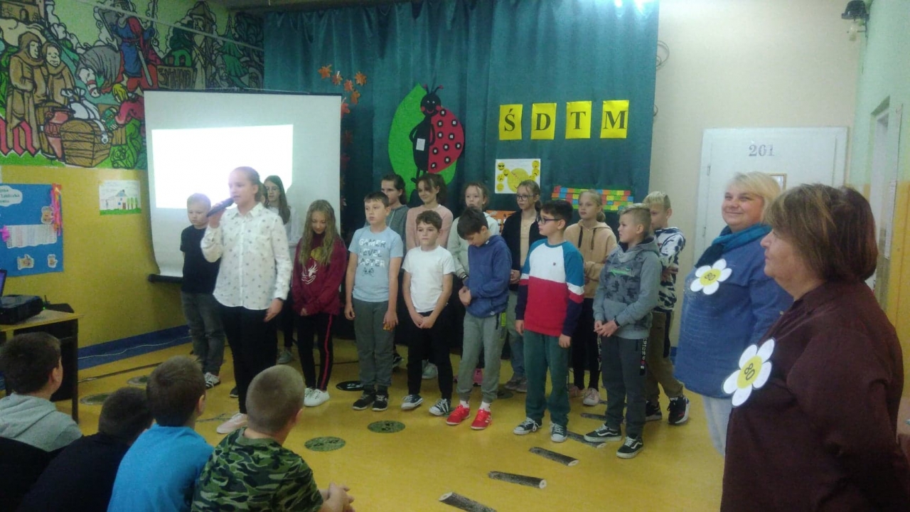 Podczas spotkania uczniowie wysłuchali piosenki oraz rymowanek dotyczących tabliczki mnożenia.
