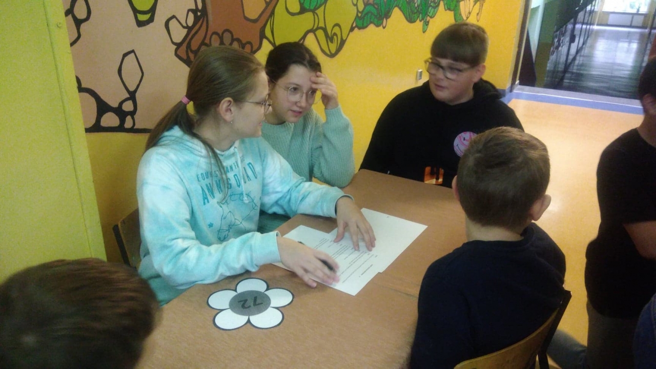 Klasowi Mistrzowie Tabliczki Mnożenia podczas ŚDTM rozwiązywali w grupach zadania. Mistrzowie rozwiązali zadania bezbłędnie.
