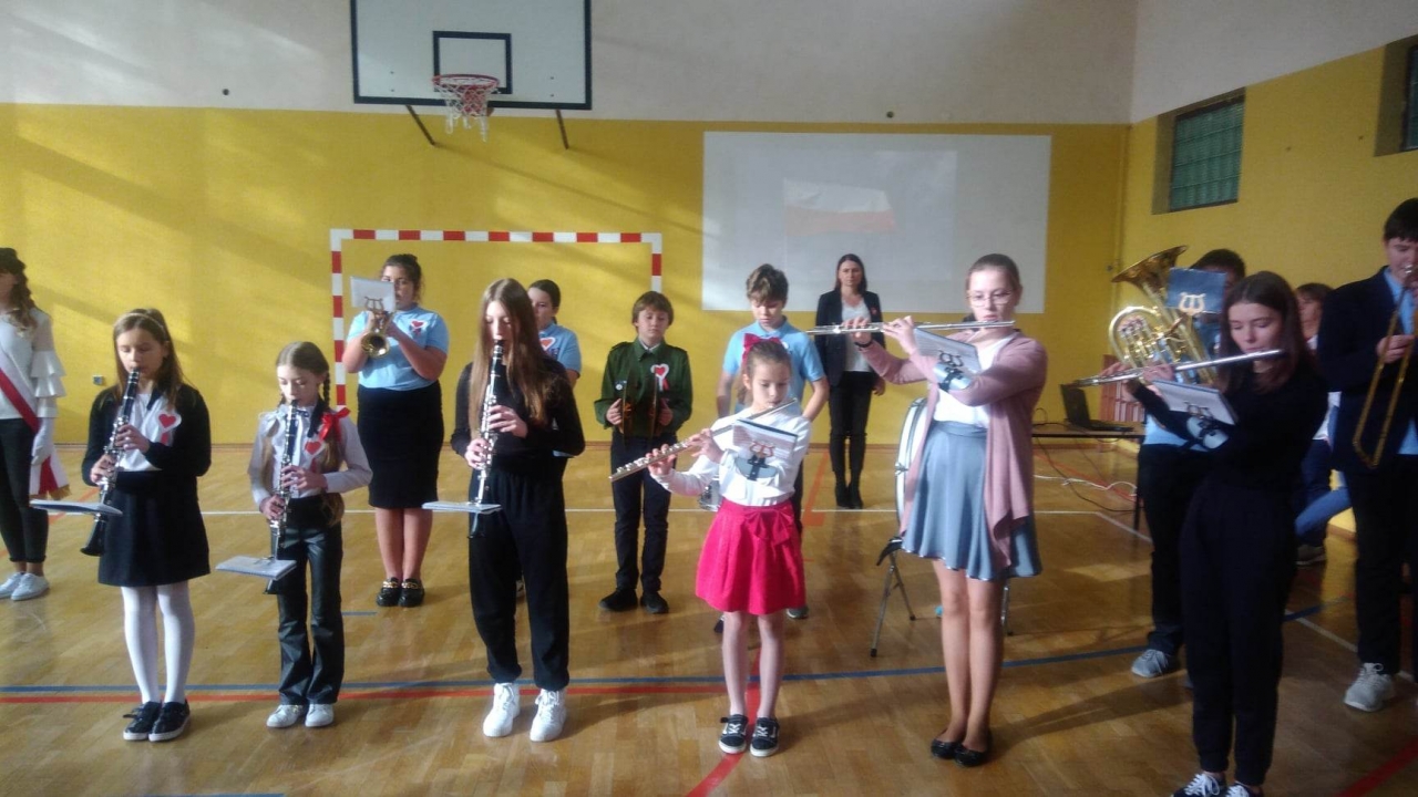 O godz. 10.00 rozpoczęła się uroczysta akademia, na którą przybyli rodzice i zaproszeni goście. Zgromadzona publiczność mogła usłyszeć piękne wiersze i piosenki patriotyczne w wykonaniu uczniów klas I – VIII oraz zobaczyć taniec z flagą przygotowany przez uczennice klasy VIII. Uczniowie naszej szkoły, którzy grają w Orkiestrze Dętej Gminy Żytno, zaprezentowali swoje umiejętności, wykonując „Mazurka Dąbrowskiego” i „Rotę”.
