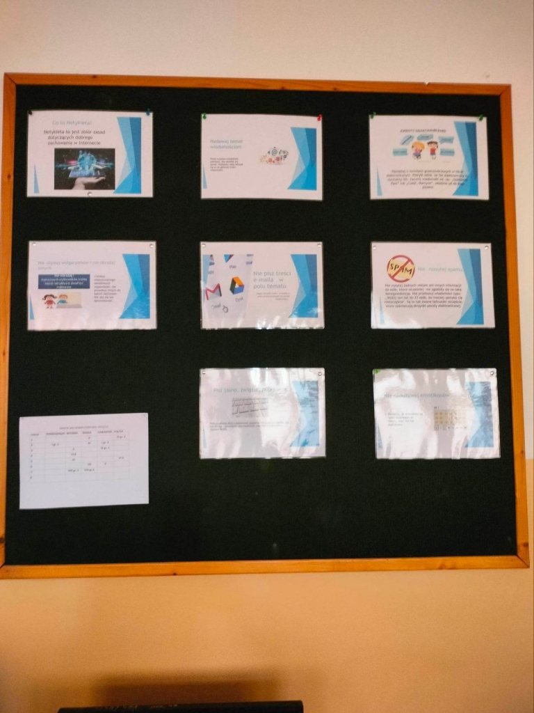 Uczniowie klas starszych, przedstawiali prezentacje multimedialne, uczesniczyli w lekcjach online " Dbam o swoją prywatność w sieci". Na lekcjach wychowawczych i zajęciach informatyki rozmawialiśmy nt. " Co czyha na naszą prywatność w grach w sieci", " Jak chronić się przed hejtem". Uczniowie wykonali gazetki informacyjne.