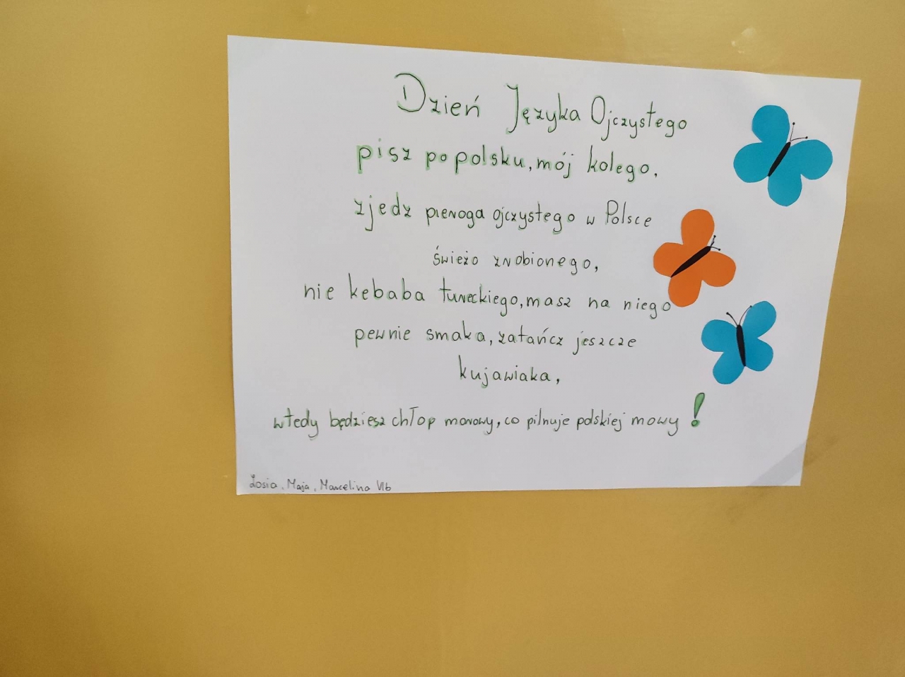 Zajęcia rozpoczynały się od wzorcowego odczytu nauczycieli fragmentów ,,Zemsty” Aleksandra Fredry – patrona roku 2023. Następnie odbyły się konkursy kaligraficzne, podczas których powstały dzieła sztuki piśmienniczej ukazujące hasło ,,Dzień Języka Ojczystego”, a także quizy on-line skoncentrowane wokół poprawności językowej. Uczniowie zdali sobie sprawę z odpowiedzialności każdego Polaka za kształt swojego rodzimego języka. Przejawem owej troski naszych młodych obywateli było wykonanie przez nich plakatów promujących piękno polszczyzny, podkreślających jej niezwykłe walory, a także zachęcających rówieśników do czujności ortograficznej i interpunkcyjnej, wzbogacania własnego zasobu słownictwa i unikania zbędnych zapożyczeń.