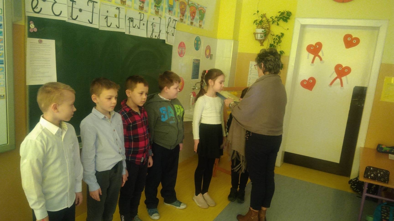 28 lutego uczniowie kl.I zostali uroczyście pasowani na czytelnika biblioteki szkolnej. Po śpiewająco zdanym egzaminie ze znajomości bajek i baśni pierwszoklasiści złożyli przyrzeczenie i zostali pasowani na czytelnika. Na pamiątkę wydarzenia nowi czytelnicy otrzymali pamiątkowe dyplomy oraz zakładki do książek.