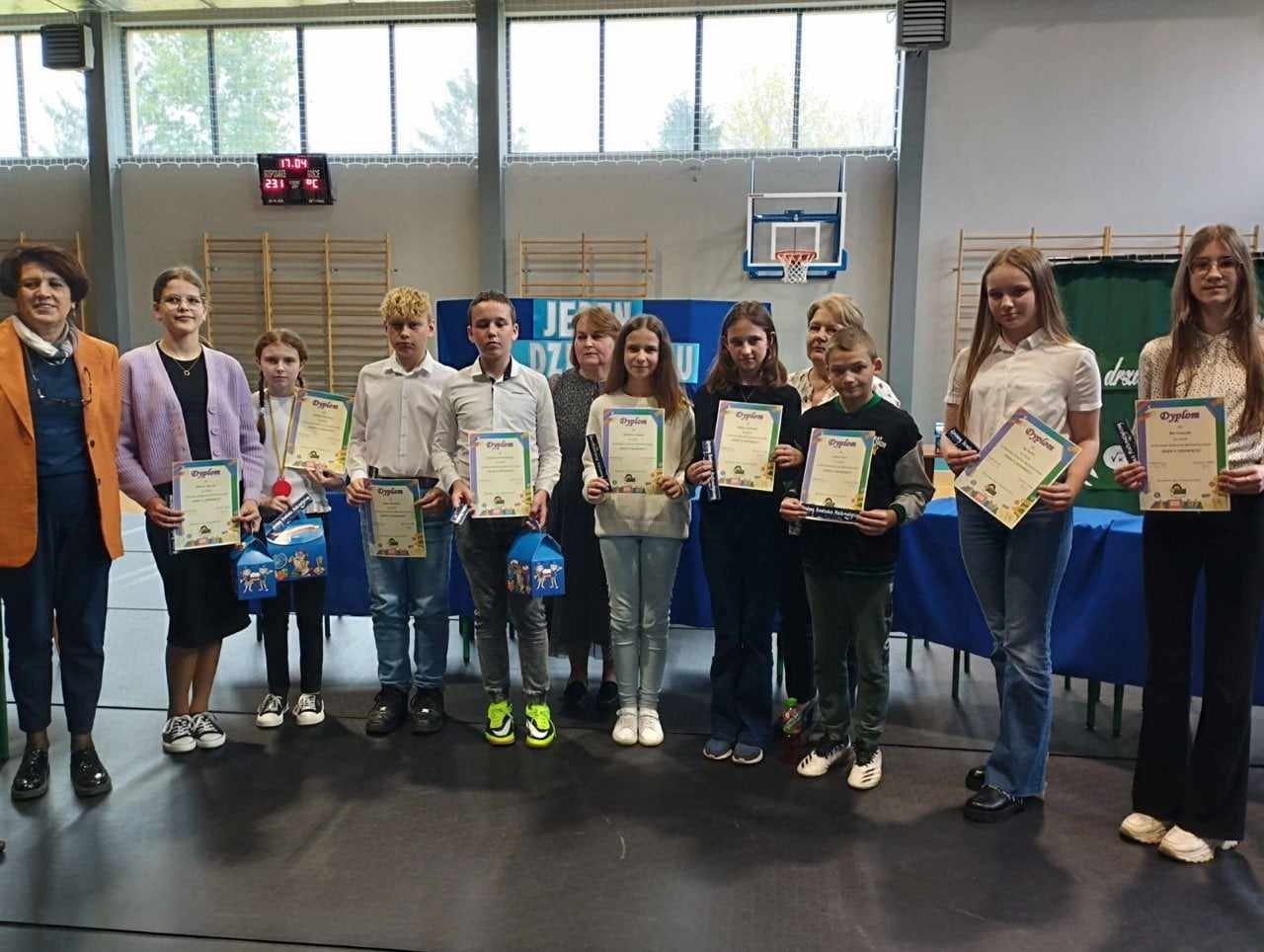 „Matematyka jest drzwiami i kluczem do nauki” – te słowa przywitały uczestników Gminnego Turnieju Matematycznego „ Jeden z dziewięciu”, który odbył się w Szkole Podstawowej w Borzykowej w dniu 17.04.2024r. Uczestnicy konkursu musieli wykazać się wiedzą matematyczną, refleksem , a także opanowaniem i koncentracją uwagi. W matematycznych zmaganiach wzięli udział uczniowie ze wszystkich szkół gminy Żytno. Turniej „Jeden z dziewięciu’ był adresowany do uczniów klas IV- VII. Naszą szkołę reprezentowali następujący uczniowie: klasa IV -Mieszko Mamnicki, Szymon Zawalski, Jakub Smolarczyk, klasa V- Magdalena Zasada, Lena Marchewka, Maria Wrońska, klasa VI- Iga Raffał, Adam Berski, Maja Czajczyk, klasa VII – Emilia Piasecka , Marcelina Bus Wszyscy uczniowie zaprezentowali się bardzo dobrze. Do finału turnieju dotarło troje uczniów: Mieszko Mamnicki- uczeń klasy IV, Marcelina Bus i Emilia Piasecka – uczennice klasy VII. W kategorii uczniów klas IV zwyciężył Mieszko Mamnicki, a w kategorii klas VII pierwsze miejsce zajęła Marcelina Bus. Bardzo cieszymy się z matematycznych osiągnięć naszych uczniów i życzymy dalszych sukcesów.